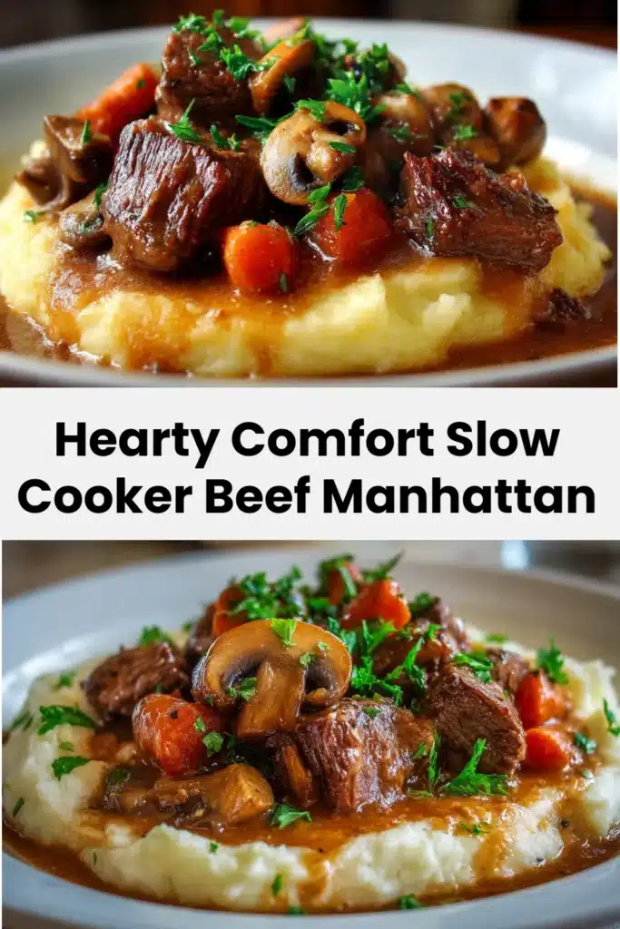 This Hearty Comfort Slow Cooker Beef Manhattan hits the sweet spot between easy and soulful. You get tender shredded beef, cozy gravy, and mashed potatoes with minimal effort and maximal payoff. Try swapping in mushrooms or adding root veggies to make the dish your own. If you want to compare different classic takes on Beef Manhattan, check out The Ultimate Beef Manhattan recipe for a slightly different, time-tested version. If you made this, drop a comment and a rating — I genuinely want to know if you loved it, tweaked it, or secretly fed it to your neighbor.