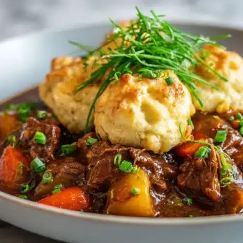 The star ingredient here is the cheddar in the dumplings — it adds a salty, tangy pop that pairs perfectly with slow-simmered beef and root veggies. You’ll get tender beef, soft potatoes, and fluffy, cheesy dumplings that soak up the stew’s savory juices. Want a quick win for dinner and leftovers that don’t disappoint? This is it.