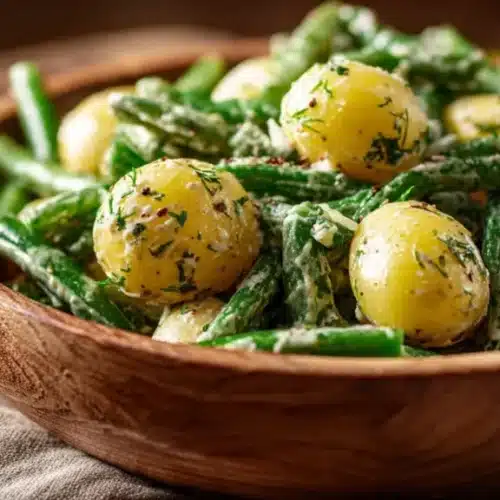 I grew up watching my aunt toss warm potatoes and blanched beans into a bowl and call it dinner. I adapted her vibe, added a zippy balsamic dressing, and now I make this recipe when guests drop by and I don’t want to panic. If you want other cozy bean ideas, check out this handy bean soup recipe that pairs nicely with heartier meals.