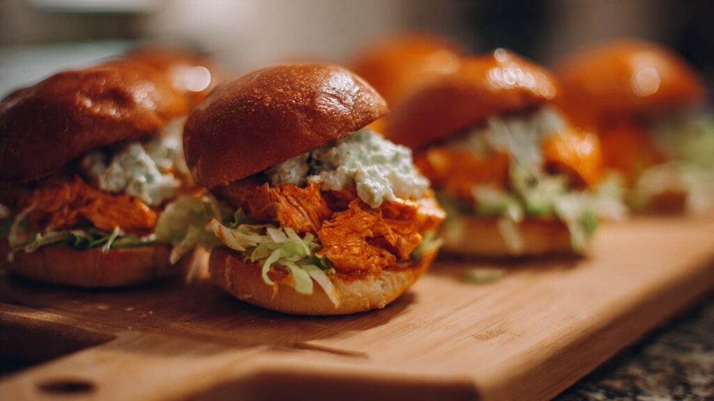 Okay, imagine hot, tangy buffalo sauce hugging tender shredded chicken inside a tiny, perfect slider.