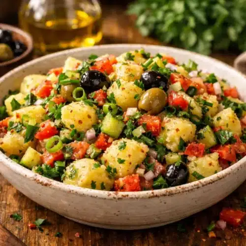 Before you cook, understand the simple logic behind this salad: the potato provides body, olive oil and lemon make the dressing, and fresh herbs deliver brightness. The method stays deliberately straightforward so the potatoes keep their texture while the dressing infuses flavor. Follow a gentle hand when tossing so you keep those lovely potato chunks intact — you want salad, not mash. IMO, small technique choices make a big difference here.